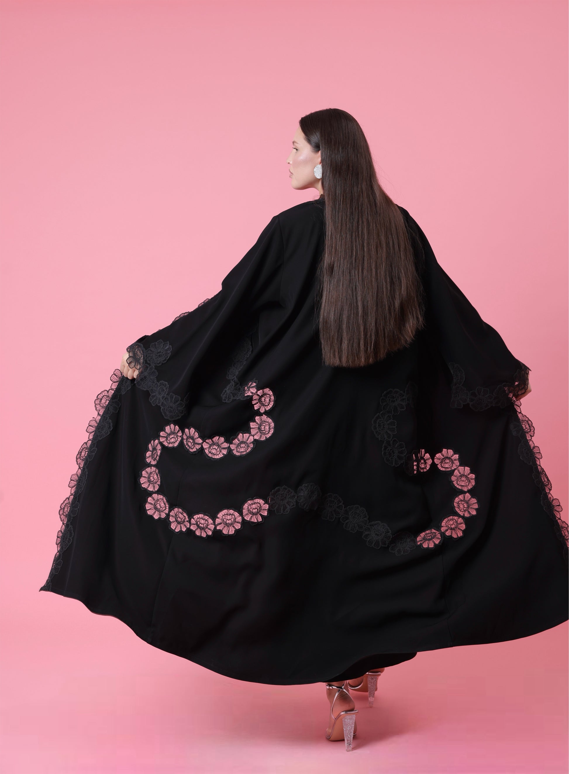 كل عباية من إيلالي تُجهّز حسب الطلب بعناية فائقة. يرجى السماح بمدة تصل إلى 10 أيام عمل للتجهيز والتوصيل داخل الإمارات.