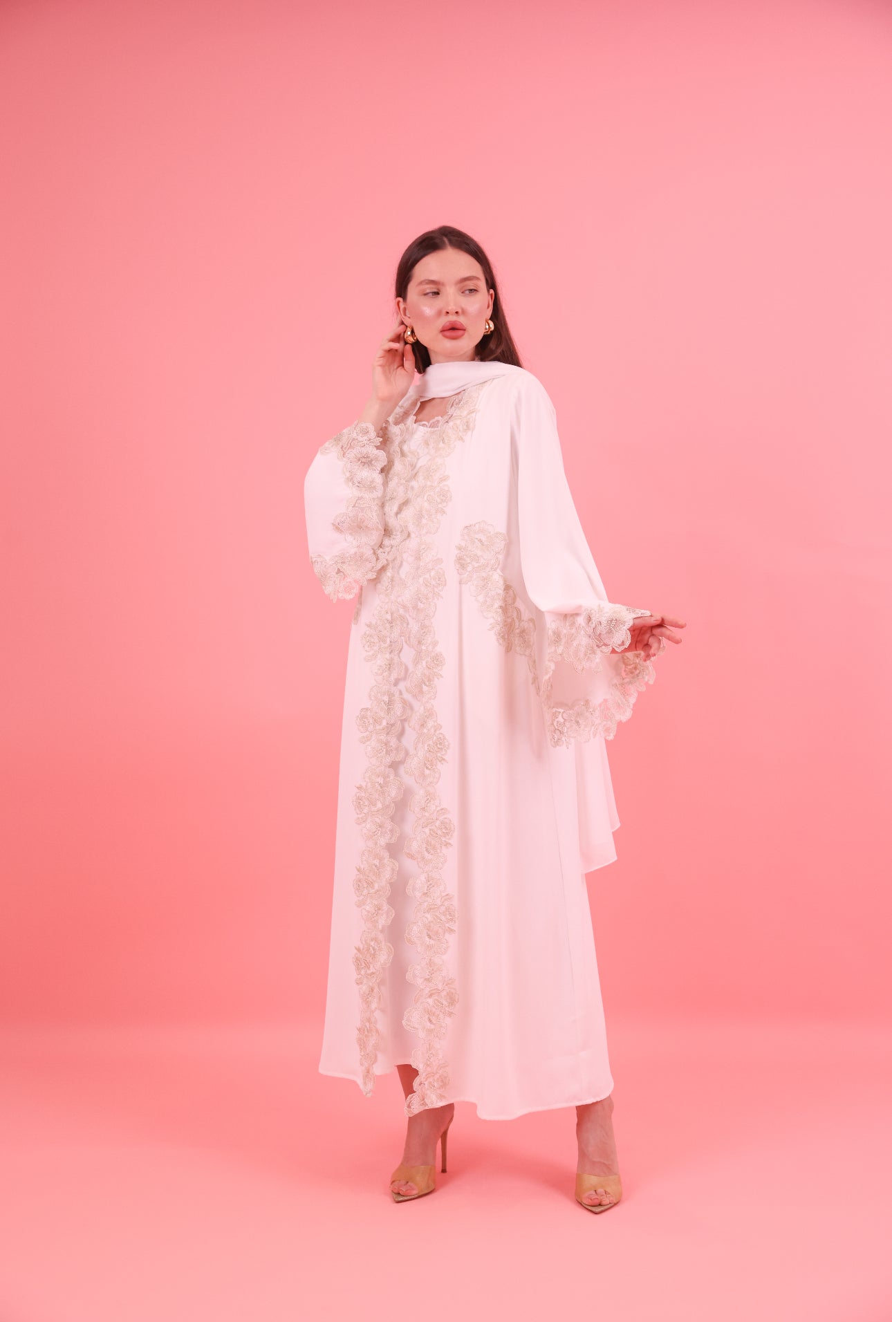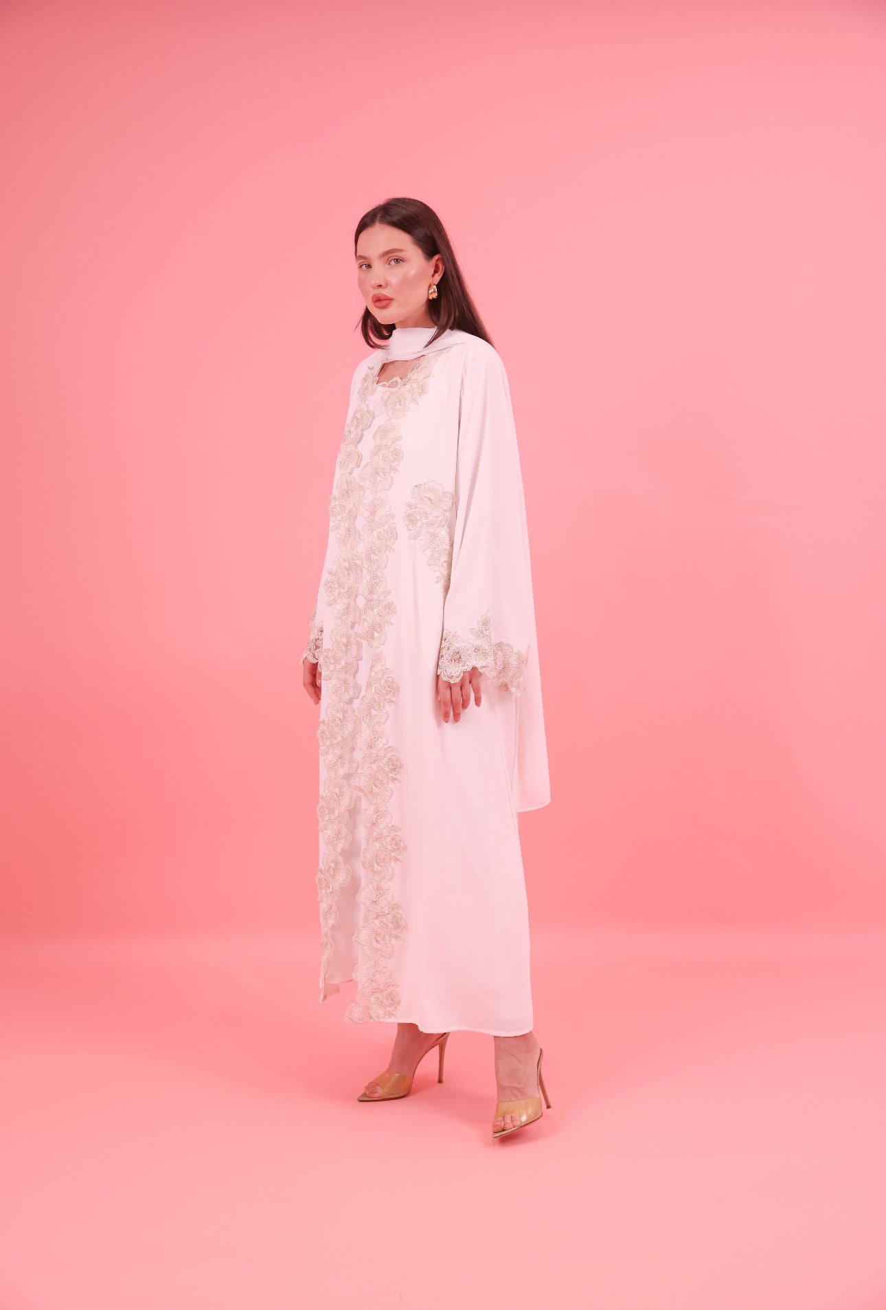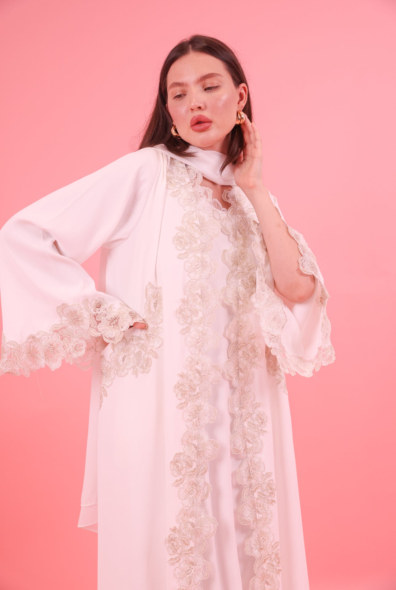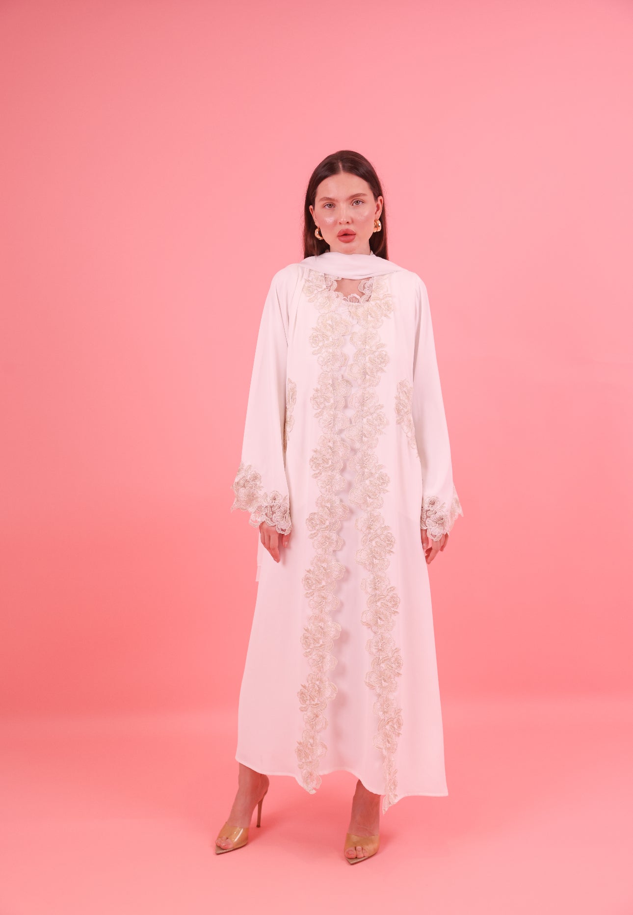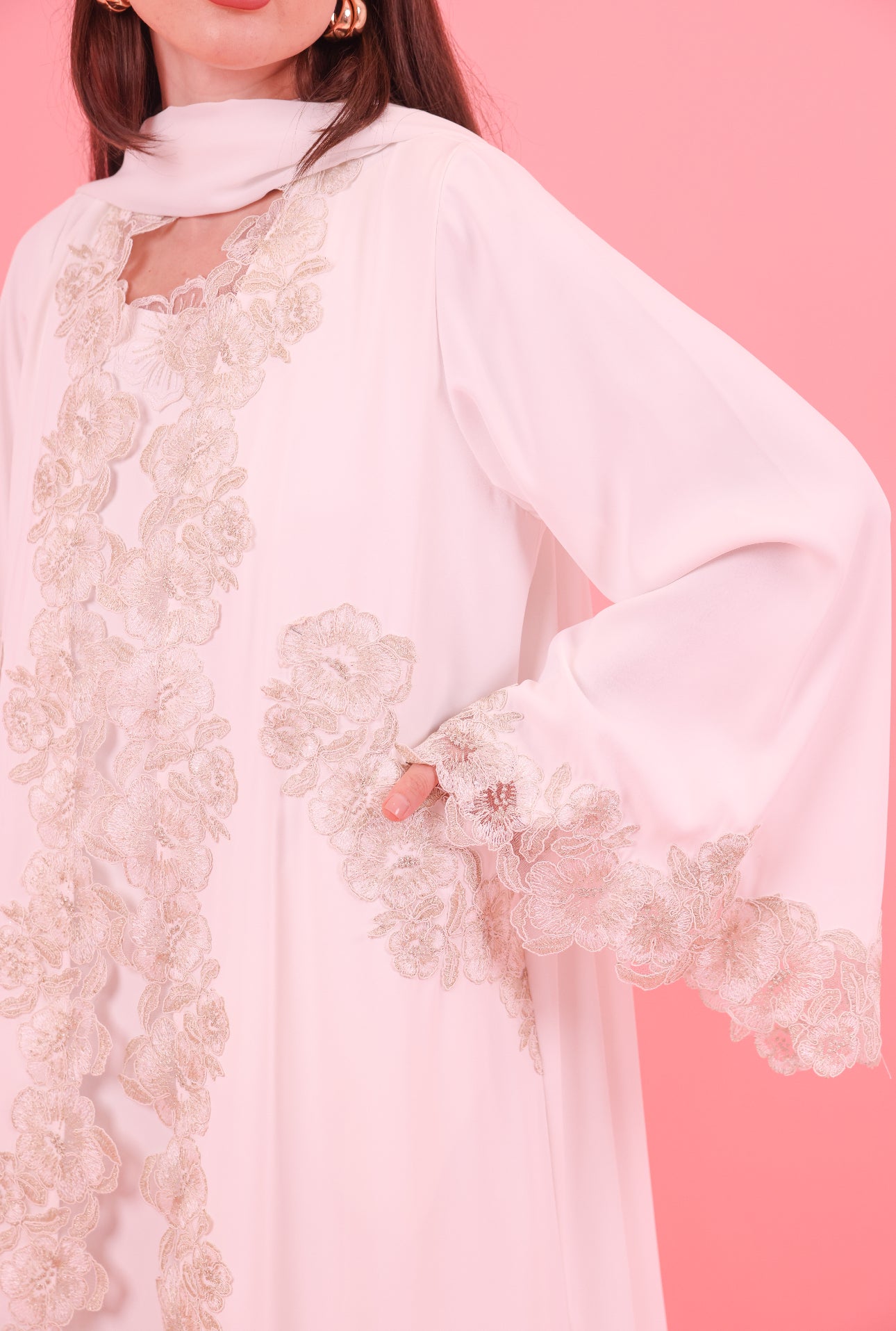 Abaya ( Butter crepe material with gold lace trim and side pockets)